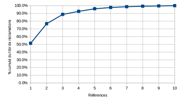 Ainsi l’analyse des réclamations peut induire différents types d’analyse Pareto : par type de réclamations en nombre mais aussi en coûts engendrés ou en impact client.